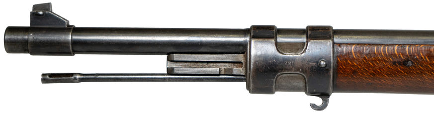 The German Karabiner 98K is a controlled-feed bolt-action rifle based off the Mauser M98 design. The K98 was designated as the standard service rifle by the German Wehrmacht (Unified armed forces of Nazi Germany) chambered in 7.92x57mm Mauser and has most of the same features as a standard Mauser. The German K98K started seeing production in the mid 1930’s. The K98, unlike its predecessor, the Gewehr 98, has a turned down bolt handle instead of a straight one. Which makes it easier to quickly operate the bolt. This rifle also can allow optics to be mounted directly above the receiver. The metal parts on the receiver were “blued,” an anti-corrosive procedure that resulted in the metal receiving a bluish black tint. After 1944, parkerizing was introduced as a more effective treatment and was implemented on most of these rifles.